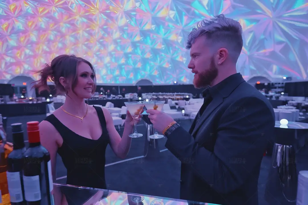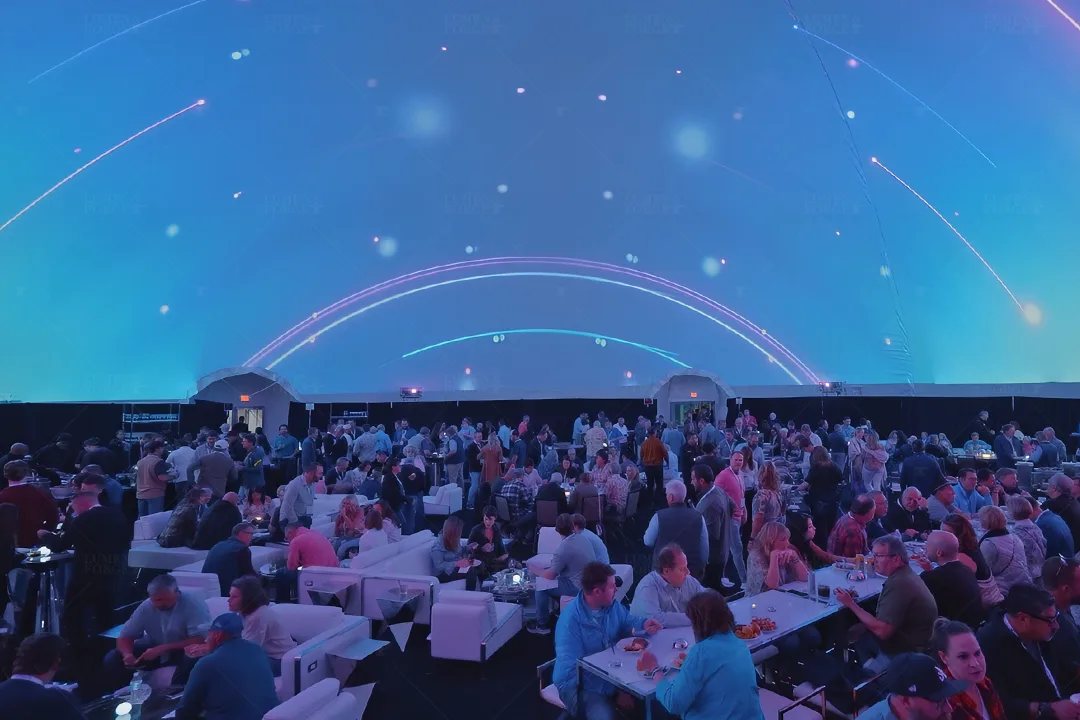 Our centerpiece installation featured a spectacular 120-foot inflatable dome, powered by 4K Panasonic projectors displaying custom-designed content. This innovative structure offered guests a distinctive and immersive environment for networking and connection.